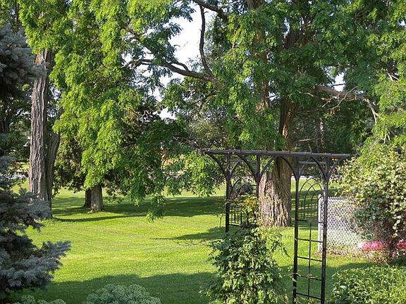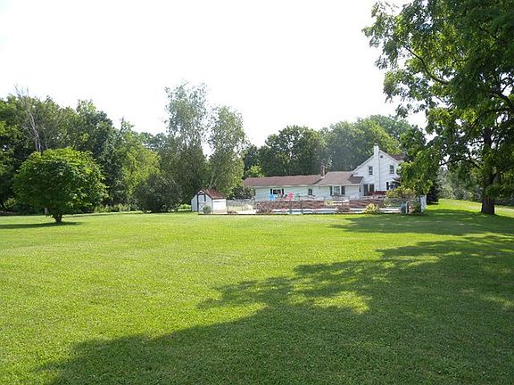Spectacular curb appeal! Property consists of 9 acres. This beautiful home has an abundance of character & charm. 3 car attached garage. Nicely landscaped yard, fenced in-ground pool area, child's play house, & additional barn/storage building. Large family room has Adirondack theme, cathedral ceilings, wood stove on brick hearth, & bay windows. Additional features include totally renovated bathrooms, hardwood & tile flooring, & nice color schemes. Lovely country kitchen has large pantry cabinet & breakfast nook. Dining room has corner china cabinets. Living room w/built-in bookshelves & stone gas log fireplace. Close to city & rec park. *Bar in Family Room is not included in sale.*
