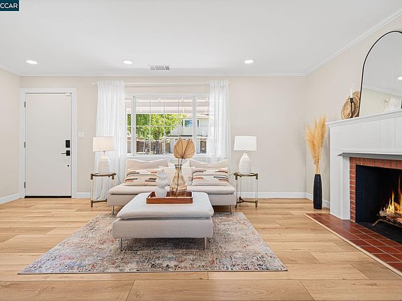 Stunningly remodeled single-story home in Gregory Gardens offers an expanded great room & a 109 sq ft. detached bonus structure, offering versatility & modern amenities. Step inside to discover luxury plank flooring throughout, complemented by recessed lighting that sets an inviting tone. The great room is the heart of the home featuring a wood-beamed ceiling, fireplace & a gourmet kitchen with white shaker-style cabinets, an island breakfast bar with seating for 4 & a gas range. Multiple access points to the backyard create seamless indoor-outdoor living. Relax in the separate living room, also featuring a fireplace, or in the dining area, each offering a comfortable retreat. The primary bedroom offers a tranquil escape, complete with a gas fireplace & direct backyard access. Indulge in the ensuite bathroom's large walk-in shower, while two additional bedrooms share a convenient guest bathroom. Outside, the private backyard invites you to unwind with a deck, perfect for al fresco dining, while the expansive lawn provides ample space for outdoor activities & play. The bonus room is perfect for hobbies or a home office. Conveniently located within walking distance to downtown Pleasant Hill & a Pleasant Hill park,& just minutes away from BART, freeways & 12+ years schools.
