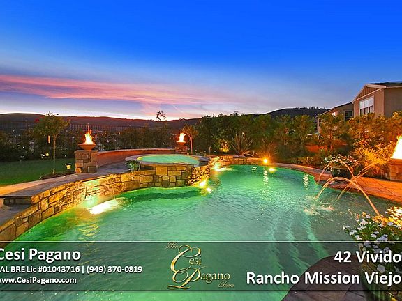 Nestled in the hills between Ladera Ranch and San Juan Capistrano lies the delightful community of Sendero at Rancho Mission Viejo. Come discover and explore active living on the ranch in this better than NEW home with breathtaking views, pool, spa and the largest usable yard in Rancho Mission Viejo. There’s more... take advantage of a lower tax rate & access to the fantastic amenities offered here. Enjoy the perfect blend of luxury & comfort in a picturesque setting; perfect for entertaining. No detail has been spared inside or out. Distressed Hickory floors draw you into the great room w/ large dining area & gourmet kitchen. Dual bi-fold doors open out to the covered patio, pool, spa & beyond; creating a spectacular indoor/outdoor space. Spend time in your dream backyard complete w/ saltwater pool & spa w/ streaming water jets, beach entry & waterfall feature. Relax by the fire pit or have friends & family pull up a stool at the bar w/ ambient fire as you BBQ a meal for all to enjoy around the "Fire & Ice" custom wall fountain; as you take in lovely views of colorful sunsets, rolling hills and city lights. Gorgeous interior appointments include; Restoration Hardware wall and pendant lighting, retro antique rope chandeliers, antique white cabinets, granite, marble, upgraded baseboards, decorative backsplash, designer paint & more! Main floor bedroom w/ en-suite bathroom offers guests a private escape while upstairs bedrooms are spacious and bright. Open loft area offers up endless possibilities for use. Bathrooms are immaculate & fresh with today's popular upgrades and hues. As you retire to the master bedroom at the end of a long day to relax and unwind, you will be happy to be home!
