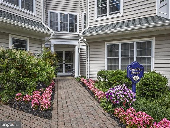 Welcome Home! This impeccably maintained home is nestled in the sought-after 55+ community of "Yardley Point" and is just waiting for your arrival. Nothing to do but unpack! Located in the heart of Bucks County, this rarely offered 1st floor condo is the perfect combination of elegant and easy living at it's finest. Simply park your car in the garage and there is a door in the back of the garage, open the door and across the hallway is your condo no elevator to wait for! Foyer entrance with ceramic tile flooring, crown molding and a convenient coat closet. The spacious and elegant Living Room is complete with crown molding and a large window allowing sunlight to naturally fill the room. Eat-In-Kitchen features ceramic tile flooring, ample cabinet and counter space, crown molding and a sliding glass door leading you to the balcony. Here you can enjoy morning coffee with magnificent serene views, and crisp morning air! The Dining room offers space for more formal entertaining and is complete with crown molding and a sliding glass door leading to a private balcony, another perfect spot for enjoying the lush scenic views. Laundry room, complete with laundry tub and storage cabinets, will make doing chores a breeze! The Spacious Master Bedroom suite boasts crown molding, walk in closet, and a Master Bath with ceramic tile flooring and stall shower with a convenient seat. 2nd Bedroom is complete with crown molding and double closet doors. The Hall Bathroom offers ceramic tile flooring and a tub shower combination. The nicely sized Hall linen closet will meet all your storage needs. This home has it all -a high efficiency hot water heater, storage closet off the balcony, plus truly magnificent views overlooking lush, private settings from literally every room! Meet with friends in the Fitness Center or the Community Room for puzzles, board games or an evening of friendly conversation! Ideally located near quick and easy access to I-95, the PA Turnpike and Route 1, plus just a few blocks away from downtown Yardley with its quaint shopping, dining, entertainment and town events! All this, plus a 1-year AHS Home Warranty for that added peace of mind and this tight-knit 30 home community truly makes this property "Home Sweet Home"! 2 Pet Limit, up to 30 pounds per pet. *****Yardley Point has a limit to Investor Ownership of 13% which equals to 4 units - There are currently 4 units owned by Investors so this unit would have to be owner occupied for the purchase of this unit. Details are in the Association documents.*****