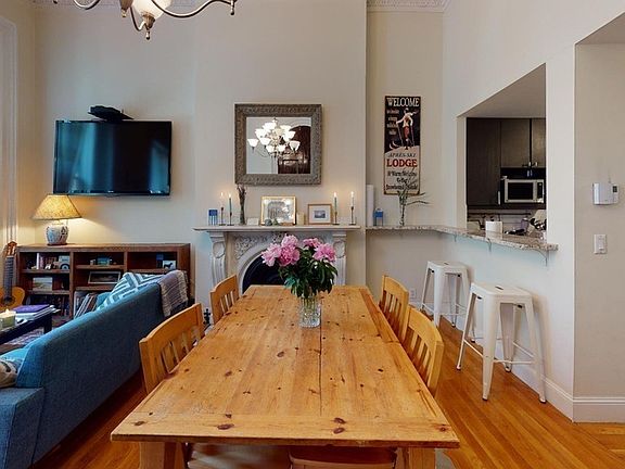 Elegant parlor-level condo in a classic brownstone with views of picturesque Blackstone Square Park & the fountain. Condo features stunning oversized arched rosewood double doors, soaring 13' ceilings accented by original, ornate crown molding & hardwood floors throughout. The living room features an original, intricately carved marble fireplace & mantle with Pella windows facing the heart of BSP. The renovated kitchen offers views of the park, a raised bar counter with seating for two, custom cabinetry with plentiful space, granite counters, stainless steel appliances, induction technology stove & Bosch dishwasher. The large bedroom faces quaint Haven Street & features an en suite bathroom, walk-in closet, original marble fireplace, as well as a lofted bonus room and lofted storage space. This condo is located steps from the best of the South End: shopping boutiques, award-winning restaurants, farmers markets, & minutes to the MBTA Silver, Orange & Green Lines.