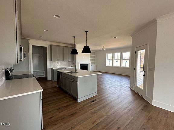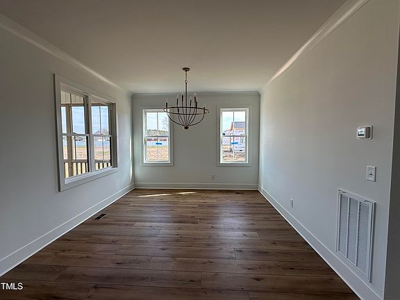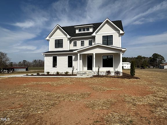STUNNING 2-storyMODERN Farmhouse dressed with Chic & Sleek finishes with CUSTOM, Quality Craftsmanship through-out home! 4 Bedroom+3 Full Baths. This open floor plan is a popular architectural design that combines multiple living spaces into one large open area! SPACIOUS family room w a cozy gas log fireplace and custom built-in bookcases. 1st Flr bedroom or Study with a FULL BATH. A Grand Owner's Suite, LARGE walk-in closet. LUSH owner's bath w His/Her vanity, soaking free standing tub and walk-in tile shower! 2nd & 3rd Bedrooms share a Jack-n-Jill bath w private water closet and separate vanities. HOT LOCATION-20 min drive to downtown Raleigh, 15 mins to downtown Clayton, 10 mins to Flowers Plantation, 10 mins to Wendell Falls Shopping AND 30 mins to RDU Airport. No HOA. Quiet, Country Living in a small community*LARGE homesites*MUST SEE!