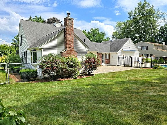 This home is set in a nice neighborhood on an absolutely incredible lot with stunning curb appeal and the backyard of your dreams! Large fenced-in yard, beautiful lawn, separately fenced-in inground pool with a huge patio that gets lots of sun. Truly one of the most awesome yards you will see and it abuts the neighborhood open space with walking trails! Short walk to the elementary school and conveniently located to almost everything you'll need! 1st floor bonus room can be a 4th bedroom or office. Spacious kitchen with lots of cabinets and counter space opens wide to the dining room and family room with cathedral ceilings and skylights! Large breezeway with cathedral ceilings, more cabinets, and built-in secret laundry space. Living room and a full bath round out the main level. The 2nd floor has 3 more bedrooms and a full bath. The basement has a finished room and an unfinished area for storage or a workshop. 2 car attached garage, central air, and town water and sewer.