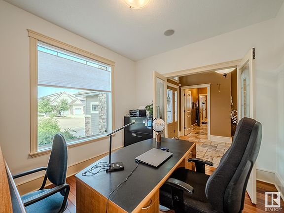This exceptional air conditioned executive bungalow provides over 3100 sqft of luxury living space combined with superior craftsmanship, stunning curb appeal and a backyard oasis, all nestled at the end of a quiet cul-de-sac. Step inside to soaring ceilings, rich finishes, and an open-concept design filled with natural light. The gourmet kitchen boasts granite countertops, custom cabinetry, premium SS appliances, and a massive island overlooking the spacious dining area and living room. The living room features a dramatic stone fireplace and large windows framing the backyard. The primary suite has direct deck access to the hot tub, a walk-in closet, and a spa-like ensuite with a tiled walk-in shower. A bright den/office and convenient laundry complete the main floor. Heated oversized garage equipped with expoxy floor, H/C water and drain. The fully finished basement is an entertainer's dream, with a large rec area, second fireplace, wet bar, additional bedrooms, bathroom and gym. Close to shops & trails