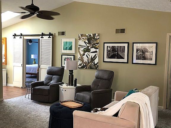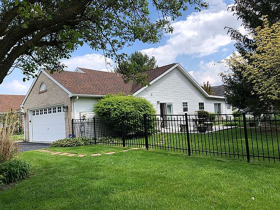 Stunning fenced in corner lot in the desired community of Westfields. 1/4 acre, no HOA. 2 bed 2 bath patio townhome with vaulted ceilings, open concept, updated finishes. 8x12 out building for easy accessible extra storage. Large 2 car garage with garage door opener. Floors are porcelain wood look tile in foyer and kitchen. New plush greige wall to wall carpeting in LR, DR, bedrooms and closets. Lighting fixtures and 5 ceiling fans are all updated. The kitchen has matching stainless steel appliances, pantry, and quartz countertops. The large heated and cooled Florida room has 4 glass sliders facing southwest sunshine all year long. Main bedroom is very large with 2 closets and main attached bath with walk-in shower and double sinks. Secondary bedroom has a barn door entrance that leads to a large bedroom and bathroom with tub. Floors are porcelain tile. Foyer has a large skylight. 16 x 16 Concrete patio leads to beautiful gardens surrounded by black aluminum fencing with gate. ALL FURNISHINGS FOR SALE. Lawn mower, snow blower and more!