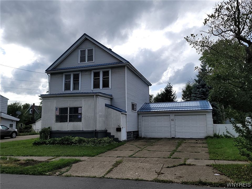 Welcome to this well maintained 2 story old-style single-family home with 4 bedrooms 1.5 bathrooms located within a short walking distance to schiller Park and only a five minute ride to the thruway Plaza and Galleria Mall. This cozy home features an enclosed porch, the first floor welcomes you into a foyer with a half bath off of it. French doors that lead you into living room/dining room combo, and an eat in kitchen. Second floor has 4 bed rooms and full bath. A good- sized yard partially fenced in, a 2 car attached garage, a metal roof and plenty of space for storage. This home is now move in ready!!