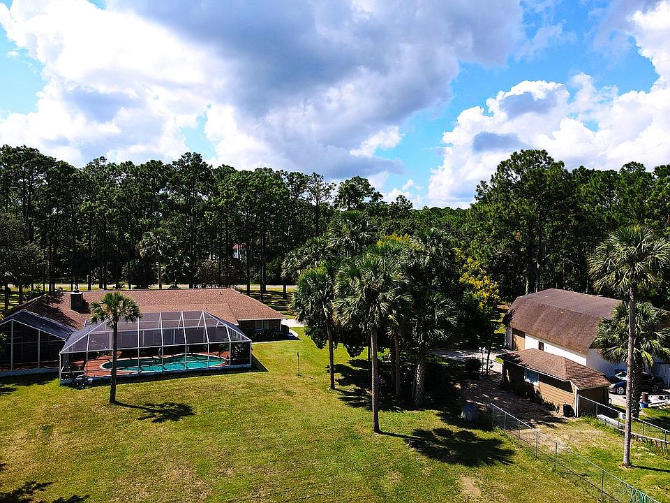 5BR-2.5 Bath Ranch-style brick pool home in Equestrian community (bring your horses) with detached 34'x46' two-story masonry barn/workshop and 2 detached art studios (air conditioned ) - large fenced dog run - 5 acre water frontage site - new 22KW whole house generator system and water conditioner - 2 separate A/C units - screened pool enclosure - sprinkler system for lawn - low HOA fees - 90-120 days needed to remove personal property - home next door sold 9/21(smaller/older/no pool) for $770K - separate electric meters for home and barn - barn wired for 220V electrical service for welders, etc. Almost at the end of a cul-de-sac; virtually no traffic