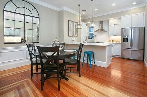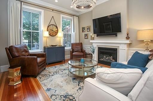 Directly on the historic Training Field, this quintessential Charlestown three bedroom, three bathroom home is renovated to perfection, offering an open layout w/over 1700 sq ft of exquisitely finished living space including a comfortable living room with views of the Training Field through large windows with shutters, crown molding, pumpkin pine floors, 10 ft ceilings & a gas fireplace. Elegant dining room has custom cabinetry & brand new all white kitchen has gas stove & range hood, quartz counters & breakfast bar. Master Bedroom has walk-in custom closet & luxurious bathroom with radiant heating, soaking tub & glass enclosed shower. The first floor is completed with second bedroom with shutters; bathroom with walk-in shower; stack washer/dryer & extra storage. The lower level offers a family room which converts to a bedroom with plantation shutters, distinctive sliding barn door with hidden closet, a spacious bathroom & enough room for an office. Garage rental parking available.