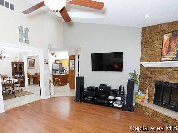 Home has great living spaces offering multiple uses. Sun Room could be office. Den could be Guest Room. 3rd car Garage could be a Game Room. Recent improvements are popcorn ceilings removed and painted. Dining Room opened up and painted. New tile in DR & KIT. New cordless blinds. Solid door and room darkeners added in MSTR BR. New Front Door. New water heater and tile in Laundry. Workshop accessible from Meadowbrook Rd. Surround sound wiring in place.
