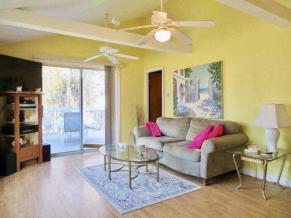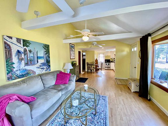 - RoomLivingRoomFeatures: Living Room, Bay/Bow Windows, Ceiling Fan(s), Sliding, Beamed Ceilings, Laminate