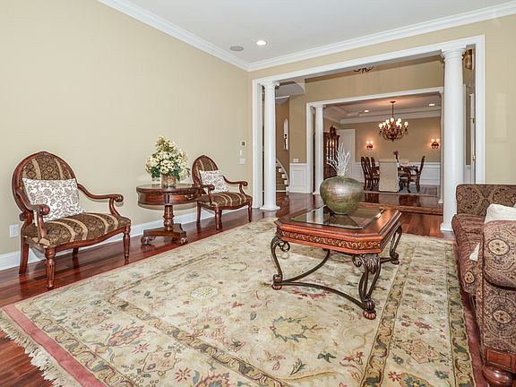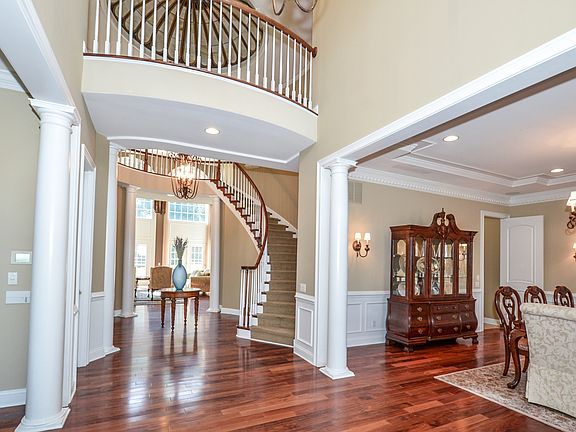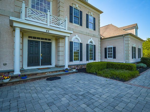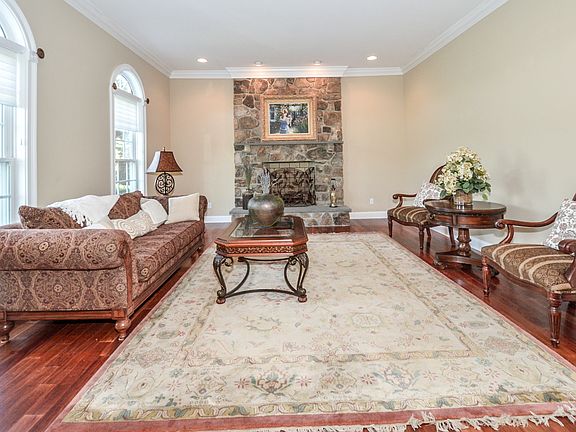 Welcome to this spacious, gracious and beautifully appointed home, built by Pulte Builders which served as their model home for Symphony at Solebury, with many fine features and upgrades throughout, and has been lovingly maintained by the current owner. Located on a private tree lined lot, and overlooking a tranquil pond with breathtaking views, you are just minutes away from Peddlers Village and New Hope with all of its quaint shopping, trendy restaurants, and an easy commute to New Jersey and other major roadways. Three finished levels of living space with special features and attention to detail, including hardwood flooring, custom mill work, a stunning circular staircase with a rotunda and a beautiful stained glass dome. The bright open floor plan is a perfect home for entertaining, with 10 foot ceilings on the first floor, a huge dining room for large gatherings, and a dream gourmet kitchen with cherry cabinets, granite counters, Wolf appliances, butlers pantry, a walk in pantry and a sunny breakfast room which overlooks the backyard. The soaring two story family room features a wall of windows, and a double sided fireplace adjoining the private office with a fire place. Relax in the beautiful sun drenched conservatory located just off the office. A convenient rear staircase also leads you up to the second level. The master bedroom suite is the perfect retreat at the end of the day which offers a step down sitting room, wet bar, and a cozy fireplace to relax and unwind, all this and a well appointed master bath with jetted tub and a spacious walk in closet. Each bedroom has large closets and their own private bathroom. The finished walk up lower level has a large recreation room and game room, complete with a wet bar, work out room, media room and extra bedroom with full bathroom. The over sized four car garage gives you plenty of room for the whole family to park and the long driveway has room for all your guests. Outdoor living areas include a maintenance free deck, a paver patio, perfect for your summertime entertaining, and an abundance of professionally enhanced landscaping. Don't miss the fragrant lavender garden located just off the back deck.