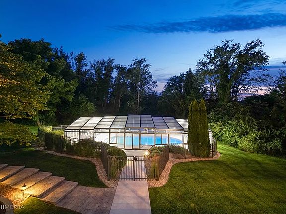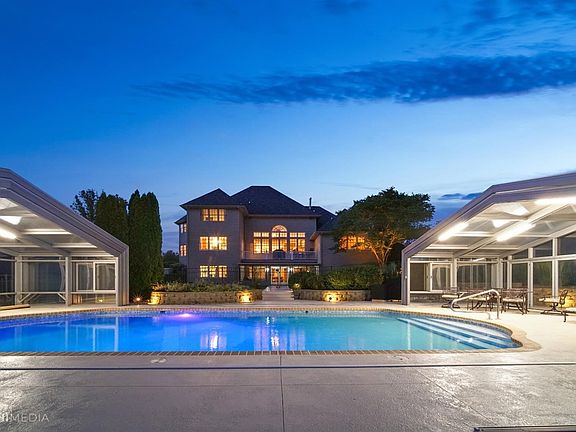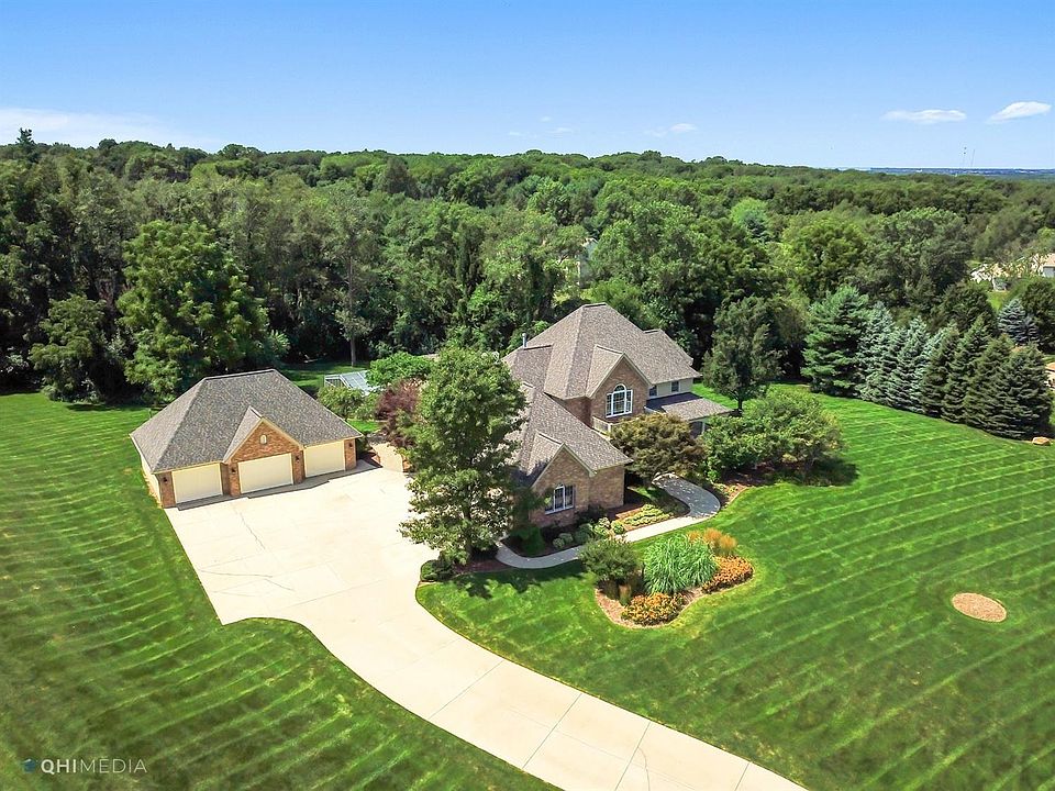 Located on one of the highest points in NWI, with glimpses of Chicago on clear days this home is a perfect mix of relaxation and entertainment. Situated on 2.5 acres, custom built 2 story with walk -out basement to your backyard oasis. Open concept kitchen into the 2 story great room complete with top of the line Dacor appliances, downdraft range and granite counter tops. Main floor owner suite includes walk-in closet and marble bath with 2 separate temperature controlled shower heads plus rain shower. Swim year round pool in your gunite pool with retractable Dyno Dome and heater. Pool is salt water compatible with Pent Air technology including in floor cleaning system. Fabulous features include wrap around porch, 3 car over-sized detached garage PLUS 3 car attached garage, grand foyer, 2 story great room, formal dining and living room, 5 bedrooms, 3.5 baths, basement wet bar and pool room, porch, office space and so much more!
