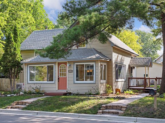 Charming & updated on double lot with stellar location. Close to parks, trails, school and quaint downtown Delano. Updated, cozy and functional kitchen with built-in dining area benches, center island, silestone countertops. New LVP flooring throughout the main level. Updated full bath. Bright and sunny front porch. Main floor bedroom. Upper level complete with two bedrooms and office/nursery space attached to primary bedroom. Large fenced double lot with mature trees. Oversized 25x28 insulated garage with private alley access. Paver sidewalks, deck and tasteful landscaping.