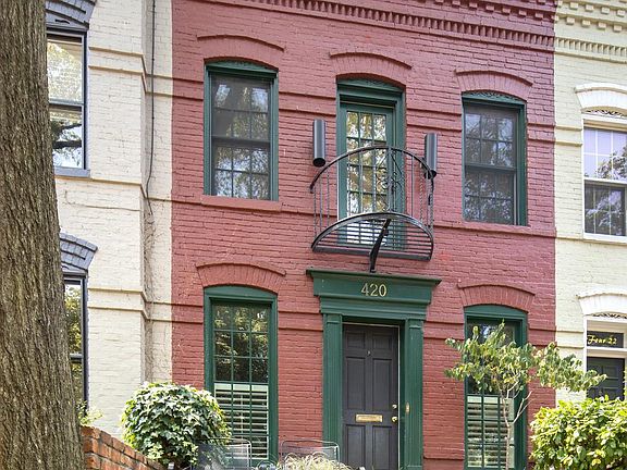 On a quiet street in historic Capitol Hill, just two blocks from Stanton Park, this beautiful row house boasts hardwoods throughout, an arched fireplace and exposed brick. In a neighborhood enclave with privacy and period charm, this fantastic location is a short stroll to the National Mall, Union Station, Eastern Market, H Street, Union Market and NoMa, offering every urban amenity imaginable. Inside this lovely home, the formal dining room features a wine fridge, built-in sideboard and display cabinets. With a long window perfect for growing herbs, the kitchen sparkles with stainless steel appliances and a glass tile backsplash. Full of natural light, the spacious owner's bedroom has a vaulted ceiling with skylight and a charming Juliet balcony perfect for window boxes. A washer/dryer upstairs makes laundry convenient. A fenced, brick patio offers private outdoor space for al fresco dining and gated, off-street parking. In addition to extensive interior and exterior renovations, the home has a new HVAC condenser, new water heater and attic storage. A truly rare opportunity to own a piece of historic Washington, DC!