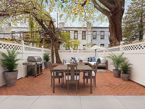 ALL SHOWINGS AND OPEN HOUSES ARE BY APPOINTMENT ONLY. CONTACT LISTING AGENT TO SCHEDULE. Spanning 3 full stories plus a fully finished lower level, this rarely available 2-family barrel-front home with striking cornice provides nearly 4000 square feet of living space and is an exceptional find! It has been lovingly maintained and is currently configured as an owners' unit spanning three full floors including 3.5BD, 1.5 BA with recreation room, office and laundry area, and a top-floor 1.5 BD + den, 1 BA rental. With abundant storage space and 19 windows throughout, the home is airy and expansive. Enter the owners' triplex on the garden level to a charming living room with decorative mantle, wainscoting, original parquet, and french doors leading to an open kitchen – over 25 ft long and replete with cabinet storage and counter space – and full dining area. A convenient half bathroom and split system A/C units are also found on this level. Double floor-to-ceiling windowed french doors provide access to the easy maintenance South-facing yard, large enough for relaxation, gardening and dining under the leafy canopy of an established tree. With over 10 ft ceilings, the light-filled parlor level has 3 bedrooms, an extra flex room ideal as an office or dressing area, full bath, and laundry. Further expanding the footprint is the fully finished lower level. Currently used as a fun-filled game room with a wall of deep closets, it is a perfect den, recreation and storage space. The top floor is super spacious and has an open kitchen and living area; den/office; and an extra-large bedroom spanning the full width of the home that can easily be converted into a 2 bedroom. (Some photos are virtually staged.) Improvements include: new furnace (~2009); new roof (~7-8 years ago); updated plumbing and electric; among others. Centrally located on a lovely tree-lined street, nearby to the subway, and minutes to vibrant greenspaces, waterfront parks and promenade, a wealth of local shops, restaurants, and commuter ferry.