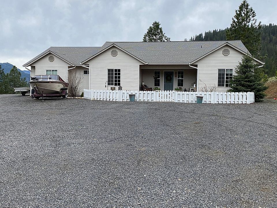Spacious 2272 square foot rambling ranch has a large fenced backyard with a water feature, brand new deck and paver patio. Large driveway for multiple vehicle parking, room for RV or boat on the side of the home. Knotty alder custom cabinets with multiple pull-out drawers. Newer upgraded stainless steel appliances. Walk-in closets as well as traditional closets--lots of storage space. Large master suite with jetted tub and separate tiled shower. Opposite side of the house has 2 bedrooms and a full bath. Large laundry room/mud room and pantry with access to the garage and sun room. This home has breathtaking views and is five minutes to town. World class fishing on the Clearwater river and Dworshak reservoir as well as great hunting are minutes away. Buyers Agents welcome. Up to 1.5% commission.