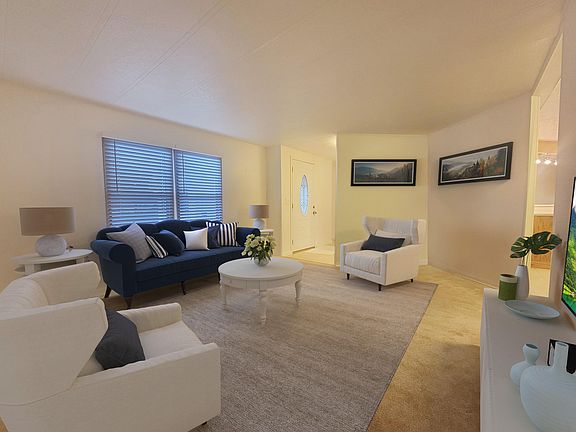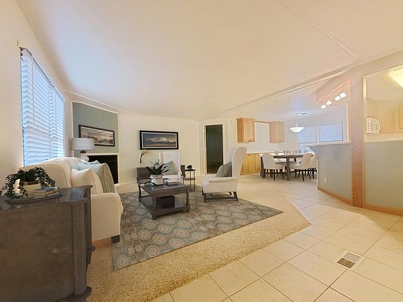 This home was completely renovated in recent years and has all the bells and whistles! Featuring a master suite, tiled floors, a gas fireplace, a custom kitchen and dining buffet, central air and even a sprinkler system in the yard. Enjoy the large covered porch or the enclosed porch on the other side. Nice laundry room with lots of storage space and an open living area with an additional family room. The home's exterior has metal siding and the two steel carports are included as are the large storage sheds behind the home. The natural gas grill is included so you'll never have to haul propane tanks! This is the perfect home to live out your golden years in a quiet 55+ community located in the scenic town of Sheridan. Lot rent is $599/month and includes water, sewer, and trash