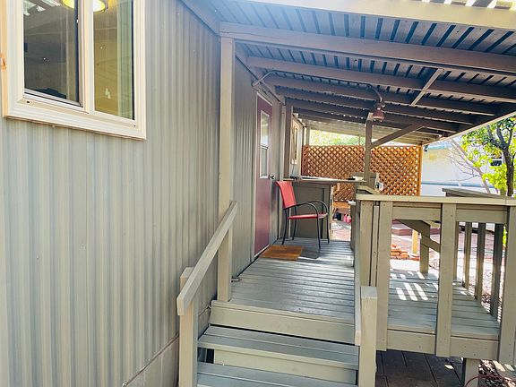 This lovely and semi-private approximately 800 square foot manufactured home with 2 bedroom and 2 baths. Glassed Arizona room in addition to a utility/storage room with a stacked washer and dryer. The home is located in desirable West Sedona only five minutes from most all stores and some of the best hiking trails in the whole area. Is in the shadow of majestic Thunder Mountain. The driveway and backyard are fenced and backyard faces a beautiful dry creek bed and hillside where from your very own private covered deck or your bedroom glass door you will see all sorts of wildlife. Side of the home has a private patio with top view of Thunder Mountain. The inside and outside of the home has been well loved and cared for. All previous tenants have enjoyed living in the home. This home is equipped with an evaporative cooler, and gas heat. Small pets welcome. Owners store a unmovable travel trailer on the far side of the property which is shielded by a privacy fence, and the owners are on site to access the trailer without prior notice to tenants. No smoking, or subletting allowed. Good credit and verifiable income are required to apply. Available for a minimum of a one year lease term.