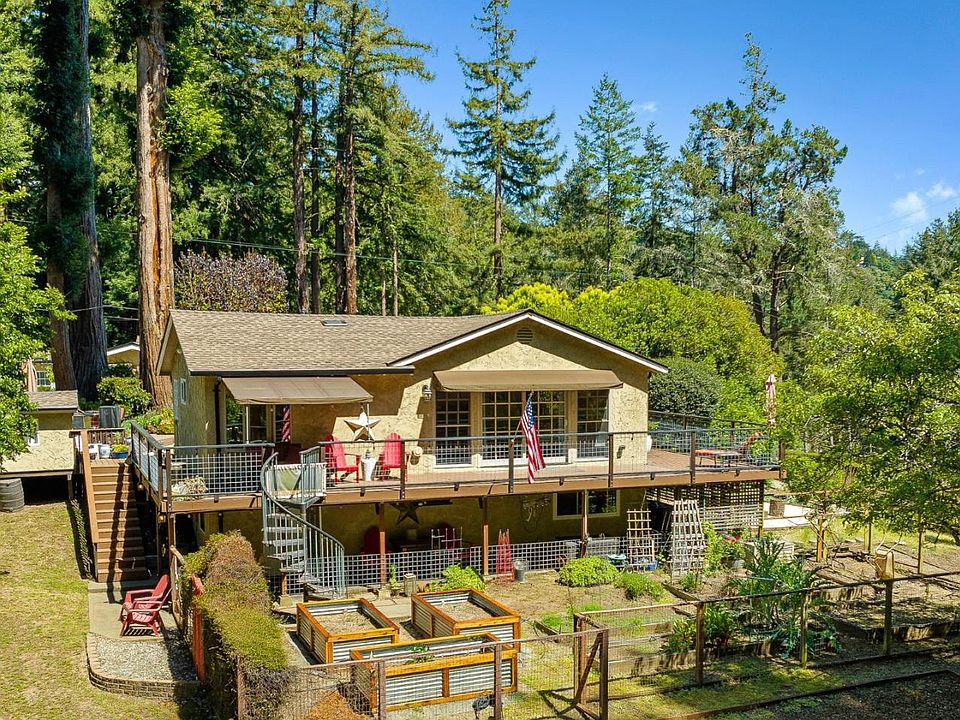 Two Separate Homes on just over an Acre! This magical homestead property located on a private paved road has been lovingly maintained and is set up perfectly! Beginning with a single level main house with 3 bedrooms, 2 are primary suites, stunning kitchen with cherry cabinets, granite countertops, stainless steel appliances and breakfast bar. The second home features granite kitchen countertops and alder cabinets. There is also a separate studio unit with a full bath attached to the 2-car garage. Lastly a separate carport with attached space that is currently setup as a gym. There is no shortage of parking on this property. It is perfect for entertaining large groups with an exquisite outdoor centerpiece under the beautiful redwoods. Once the sun goes down you can head over to the amazing bar. Relax and unwind. Bonus items include separate storage sheds, whole property Generator, owned solar panels, LED lighting throughout, a fenced garden with raised beds, an abundance of fruit trees, fully fenced property with a gated entrance. Centrally located with access to Soquel, Capitola, Santa Cruz, Scotts Valley and HWY 17! Come and enjoy this captivating and tranquil property filled with a peaceful ambience.