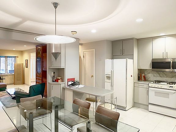 2 family attached brick home in Excellent condition. Large living and formal dining room. Kitchen has been updated. The main floor has a ½ baths and all tile flooring. Oak staircase leads to 3 large bedrooms and a full bath. This home can be used as a 2 family with a 1 bedroom walk in apartment that will bring an additional income or used as a 1 family with 4 bedrooms. Private driveway and attached garage fits 3 cars. There is a tiled front porch and beautiful back yard. This house is flooded with sunlight and very clean.The home is priced to sell!