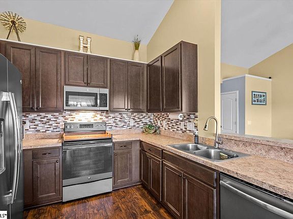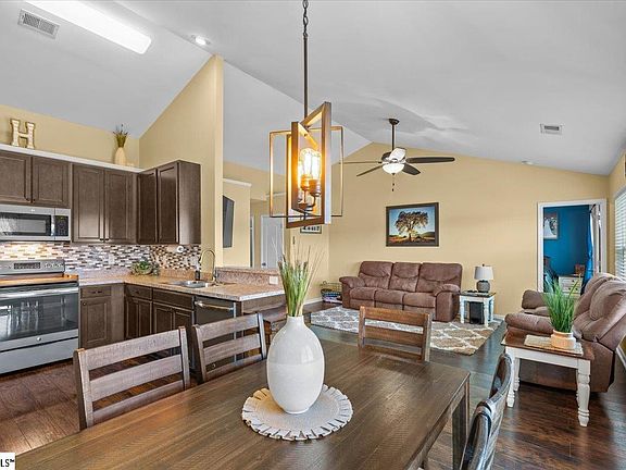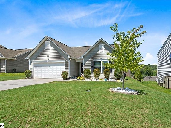 OPEN HOUSE SATURDAY 1-3 pmThis is the home you’ve been waiting for! This immaculate, 3 bedroom, 2 bath home, located in Caledonia subdivision, and zoned for Powdersville schools will be hard to beat. 420 Basalt offers more updates than I can list but let’s start with No carpet!!!! New paint throughout the home completed this year. 4k NVR camera system that can be viewed from your phone, smart switches, and maintenance free rock planters. The layout offers a split floor plan with open living, dining, and kitchen that features vaulted ceilings and a bar area, making it perfect for entertaining and watching the games. The kitchen includes the upgraded 42 inch cabinets, tileback-splash and stainless steel appliances. Extend your entertaining out to the 8 x 12 patio and the new sodded yard for a night gathered around the fire pit and watching the gorgeous South Carolina sunsets. The owners installed a wood privacy fence in 2021 with Solar lights as well. The private master bedroom features a vaulted ceiling and a large walk-in closet. The en-suite provides you with double vanities, raised cabinets for comfort, and a large soaking tub/shower combination as well as a large walk-in closet. Both spare rooms received the upgraded laminate floors as well as ceiling fans and 2-inch blinds and each room offer a walk-in closet. , There are custom blinds and ceiling fans in all rooms. You’re a short walk to the swimming pool, with easy access to Hwy 153, YMCA, all your shopping needs/wants and a short drive to downtown Greenville
