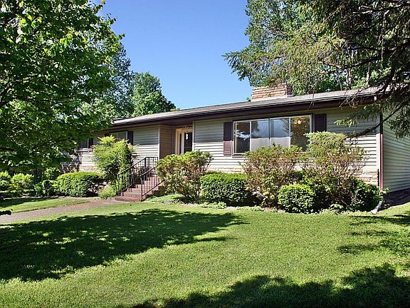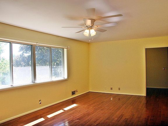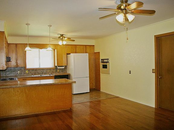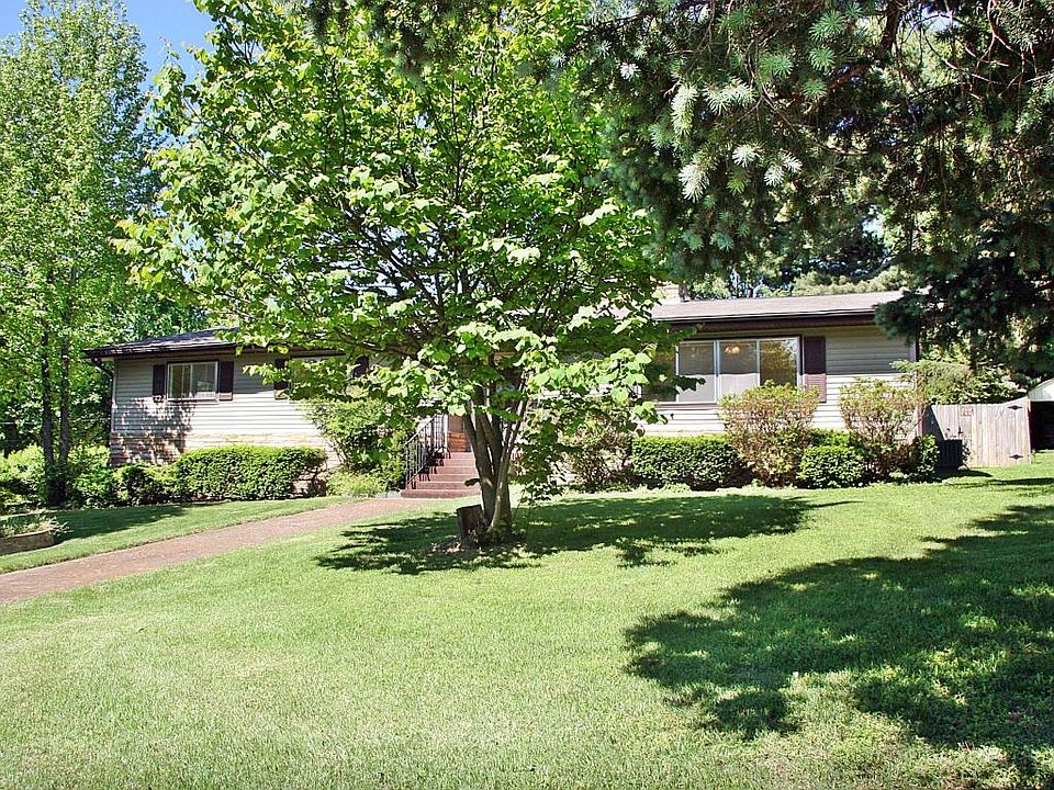 Cute home! 3 bedroom, 2 bath all on one level, with wood floors, gas log fireplace, large fenced back yard with covered patio. Basement, full, unfinished with 2 car garage doors and plenty of room for workshop area.