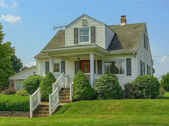 Peace and privacy are yours in this 3 bedroom Cape Cod nestled atop 1.27 acre lot. Mornings can be enjoyed on your front covered porch while sipping your favorite cup of coffee or tea. Upon entry, the sunlit living room is a blank canvas ready for any decor. The eat-in kitchen offers loads of cabinet storage & counter top prep space and flows into the formal dining rm.Closed in side entrance into kitchen makes carrying groceries a breeze.The first floor master bedrm offers neutral color tones & ceiling fan/light combo.Full bathrm with tub/shower combo complete the main floor.Upstairs has 2 additional guest rooms with built in shelving & drawers.Entertaining will be a breeze in your lower level family rm complete with wet bar & plenty of room for family & friends to gather.Access rear yard from family rm when it's time to barbecue! Lovely wood deck shaded by mature tree overlooks table top lot.2 car garage! Easy commute to Rt. 68, Rt.19. Hardwood floors under carpeting!