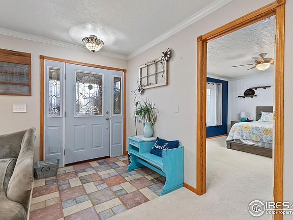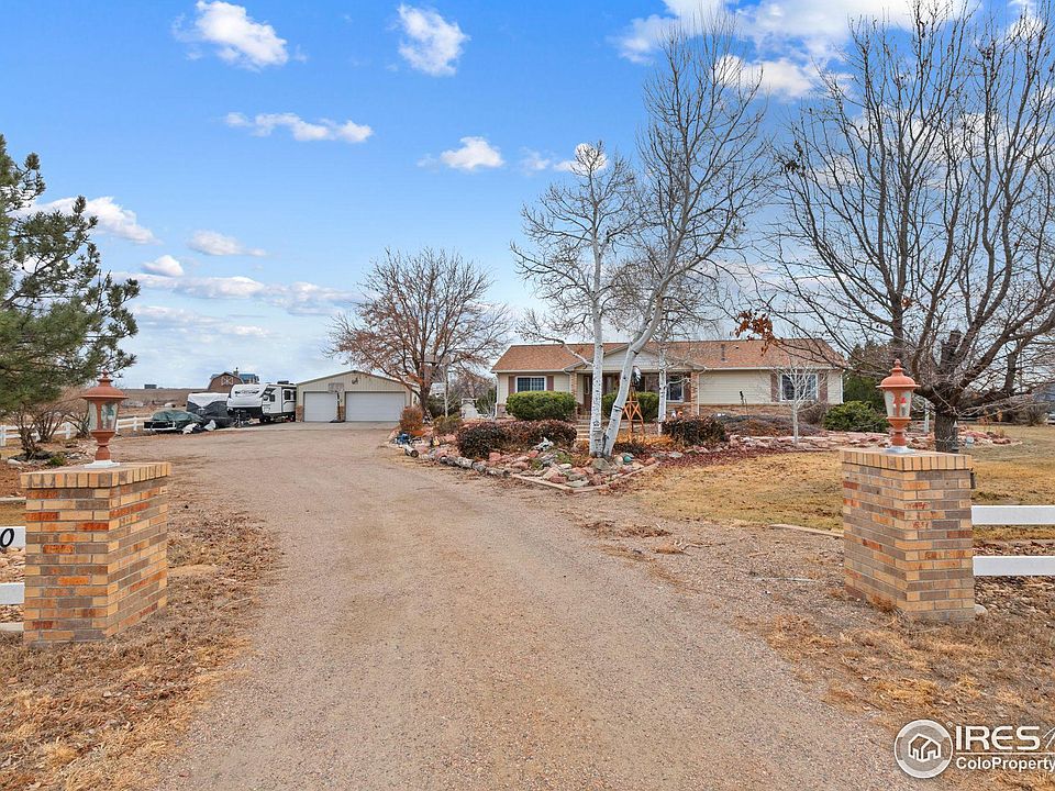 Dreamy acreage property to give you room to spread out & have toys! Move-in ready, meticulously maintained Ranch Style Home with full finished basement 5 bedrooms, 3 bathrooms with 1.5 acres, a must see property that has been beautifully landscaped with a large covered and uncovered patio & lots of outdoor living plus a 1,440 Square feet heated garage and a 192 Square feet storage shed to store all your toys. The home features mountain views, wood flooring, granite countertops in the kitchen, crown molding, farm sink, big pantry and a fully finished basement with a theater room. Ceiling/wall is sound proofed. Come make this your home in the charming town of Milliken!