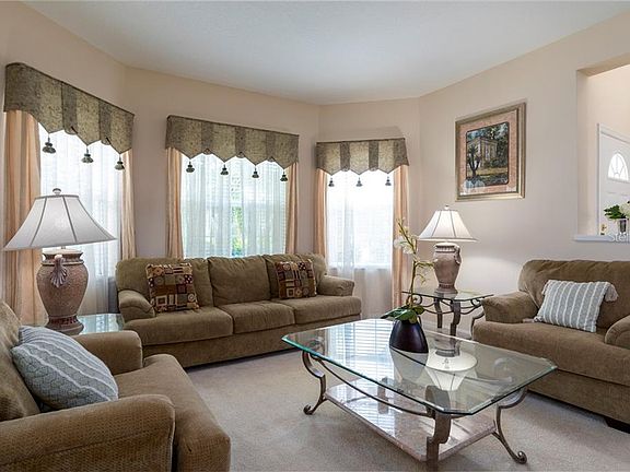 - Interior Features: Ceiling Fans(s), High Ceiling(s), Open Floorplan, Walk-In Closet(s), Solid Wood Cabinets, Thermostat, Kitchen/Family Room Combo, Living Room/Dining Room Combo, Solid Surface Counters, Window Treatments, Vaulted Ceiling(s)