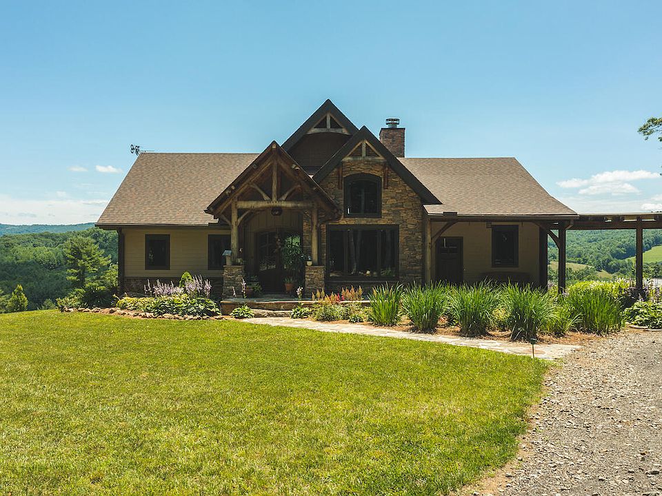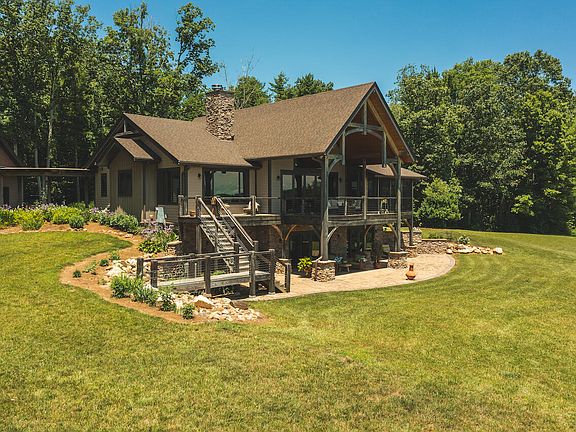 Auction Property: List price may not reflect final sales price. List price is starting bid and non-reflective of value. PROPERTY SHOWNBY APPOINTMENT ONLY. Auction property is being sold in 2 separate offerings. This is known as OFFERING #1. This property features a beautiful custom timber frame home and +/-104.58 acres for sale in Floyd and Carroll County, VA. The custom timber frame home is high-quality construction, with multiple upgrades, and is in excellent condition. Construction was completed in 2017. It has a total of 3,866 square feet of living area on twolevels. Featuring 3 bedrooms and 2.5 baths. The great room has a vaulted ceiling with exposed timbers, oak hardwood floors, and custom cabinetry entertainment center. Property adjoins Offering #2 530 Daisy Lane, Dugspur, VA 24325