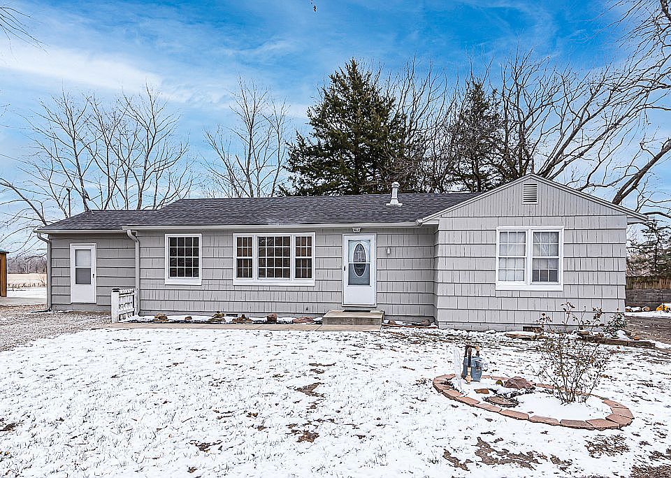 AFFORDABLE Ranch home in the Basehor-Linwood School District! Home features NEW exterior paint, 3 bedrooms, 2 bathrooms, LARGE living room, NEWER Roof, NEWER high efficiency furnace, NEWER hot water tank, 2 outbuildings, and a partially fenced back yard with a nice deck and CUSTOM built block fire pit area for relaxing in the evening or watching the morning sunrise. BONUS: hardwood floors are believed to be under carpet in the living room, hall, and secondary bedrooms.