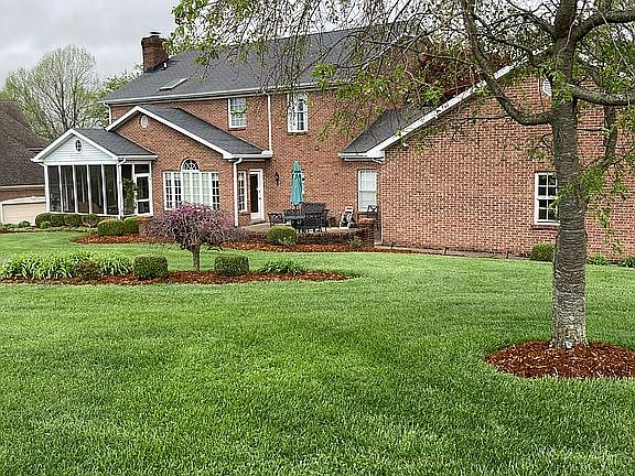 This beautiful six-bedroom four and a half bath executive home was custom built with hardwood floors, abundant trim and several lovely built-in units. A large patio in the back allows for entertaining, and a large screened porch with stained wood ceiling has been recently redone (2021) and re-screened. There is a guest bedroom suite on the ground floor with full bath , formal living room and dining room, and a large family room with wood-burning fireplace and built-in bookcases and cabinets. The kitchen has expansive cherry cabinets and adjoins a half bath with an upright freezer and pantry with built- in shelving. The enormous three-car garage has plenty of room for lawn equipment, a built-in storage shed with shelving and plenty of extra space. The finished basement has a home theatre with surround sound, a snack bar with full fridge, dishwasher, disposal and microwave and plenty of cabinets with built-in features. The guest bedroom in the basement has a built-in study desk and bookcase and adjoins an oversize storage closet, and another full bath is located in the basement. Upstairs the master bedroom has a tray dropped ceiling with custom woodwork, and a study with custom built bookshelves with dentil molding trim. The large walk-in closet has custom-built shelving and there is a separate toilet room and a jetted tub. There are two linen closets upstairs and one on the ground floor. Three other bedrooms on the second floor share a hall bath. There are steps to a large attic with flooring for storage and two built-in closets with cedar lining for off-season clothing storage. The lawn is beautifully maintained and landscaped with flower garden areas. The front of the lot has natural greenery and large trees for added privacy. The lot is over an acre in size and located in one of Elizabethtown's premiere subdivisions, which is in city limits but has an ambiance of the country. Call (270) 737-6985 or (270)765-4112 during business hours.