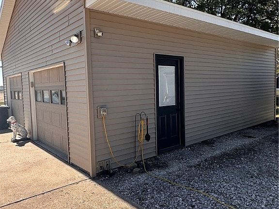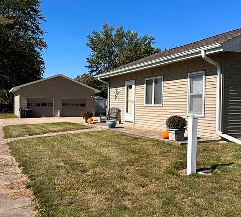 Enjoy the convenience of single-level living with this well-designed ranch layout. This quaint 3 bedroom, 2 bathroom home offers the perfect blend of small-town charm and modern comfort. The spacious master bedroom comes complete with an en-suite bathroom, offering a private retreat at the end of the day. This property boasts a well-maintained yard, with space for a boat or camper, along with a 2 car detached garage with workspace for the handyman, plus storage space above!