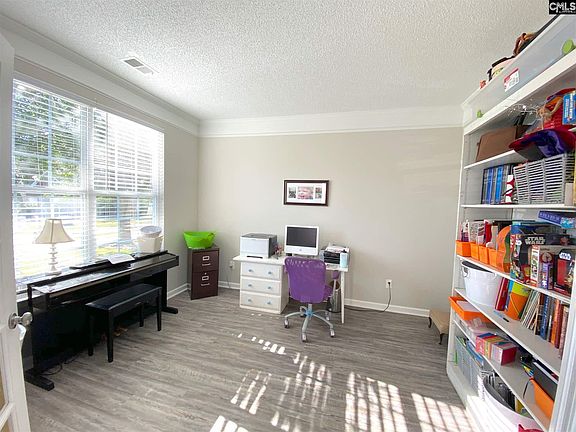 Beautifully updated home in Lexington 1 schools with a community pool! The home's front entrance greets you with laminate hardwoods, which run throughout the downstairs, wainscot molding, and beautiful archways. The formal dining room also showcases wainscoting and adjoins the eat-in kitchen. Granite countertops, stainless appliances, a gas stove, and subway tile backsplash make this a beautiful hub of the home. Laundry is conveniently around the corner in the mud area, and the partially fenced back yard is visible from the kitchen and family rooms. The family room features 2-story ceilings and a gas fireplace with soaring molding details. The downstairs office can easily be converted to a 4th bedroom with a closet upon request. Upstairs, bedrooms 2&3 both have ceiling fans and share a hall bathroom. The sprawling owners suite has 2 fans, a sitting area, a very generous walk-in closet, a separate tub and shower, a private water closet, and double vanities. New roof and New HVAC in 2019. Enjoy being close to I-20, the public library, shopping, dining and parks, or stay closer to home by visiting the community playground or pool. Make an appointment today, and come see if it's just right for you!