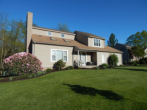 Beautifully maintained contemporary Colonial on a cul-de-sac. Great family location. Lots of kids and just down the street from one of the top elementary schools in the state - Highland School. Open floor plan with lots of windows. First floor laundry, gas log fireplace, pellet stove and plenty of storage space. The home has gone through an entire facelift. The roof, siding and most windows are less than 20 years old and have been well maintained. The ceilings and recess lighting were replaced (got rid of popcorn ceilings - hated them) and painted the entire house approximately 7 years ago. The kitchen appliances and a Lennox furnace and central AC system is 5 years old. The furnace runs on propane along with the gas stove and gas log fireplace. Approximately 3 years ago, the dark brown flooring in the TV room and bath was installed, hardwood downstairs was refinished, stairs carpeted, all new hardwood and tile installed upstairs, new master bath shower stall, 2 skylights replaced, and a new industrial water heater was installed. There is a pellet stove in the kitchen and an electric car charging outlet (50A) in the garage with a wood shed in the back yard. Picture taking was a challenge. You really have to see the house to appreciate it. Note to Real Estate Agents - Willing to pay 2.5% commission.