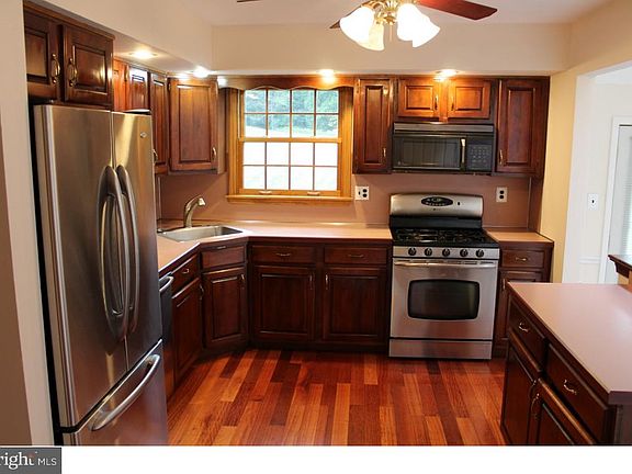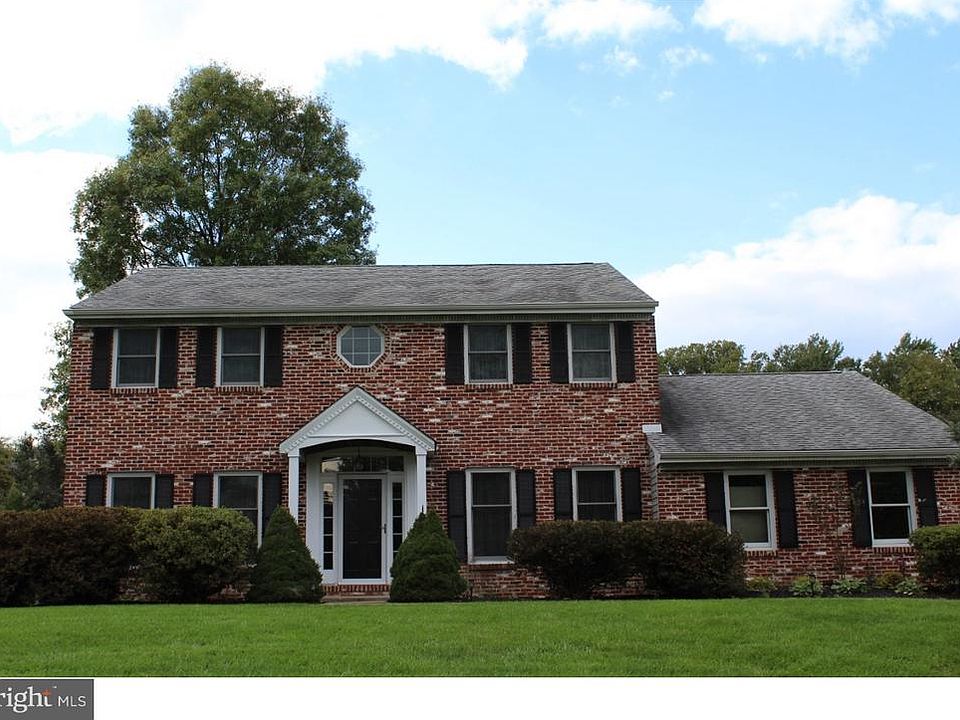 PRICE REDUCED! Come see this beautiful 4 bedroom brick front colonial on just under 1 ACRE lot in sought after Council Rock School District. Main level has an open floor plan with plenty of natural light. Kitchen features solid wood cabinets, recessed lighting, ceiling fan, an island and stainless steel appliances. Stunning hardwood floors run throughout the kitchen and foyer. Large breakfast room has vaulted ceilings with two skylights. Formal living room and dining room include crown moldings. HUGE family room boasts chair rail molding and impressive brick fireplace with pellet stove. A great place to keep warm during the chilly winter nights. Pocket doors separate living room and family room. Powder room has been upgraded with new vanity and antique bronze faucet and hardware. Upstairs you will find freshly painted master bedroom with large W/I closet and bathroom. The bathroom has also been painted and has a stand up shower and separate whirlpool tub. There is a newer vanity with a brushed nickel faucet. Three other good sized bedrooms and large modernized hall bathroom complete the level. Enjoy outdoor living in your sprawling backyard featuring patio and newer detached garage. This is the perfect spot for your workshop or a place to store all your outdoor equipment. Full unfinished basement provides plenty of storage space and potential to add additional living space. There is also a propane fireplace to help with heating costs. Other amenities include: two car side entry garage, convenient first floor mud/laundry room, newer roof, newer Pella windows, brand new hot water heater, several ceiling fans, over-sized driveway with parking for many cars and six panel wood doors throughout. Additional blown in insulation was recently added in the attic to help keep utility bills low. The master bedroom, both upstairs bathrooms and most of the first floor have been freshly painted. Walk to Churchville Elementary. Great opportunity. Call today for your private showing.