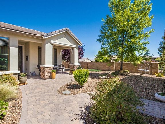Immaculate home on a great lot ideally situated in the gated Brookside neighborhood within highly desirable Prescott Lakes. Upgraded gourmet kitchen features stunning granite counters, tumbled marble back splash, upgraded cabinets with pull outs, kitchen island, upgraded SS appliances including refrigerator. Upgraded tile all areas except bedrooms, central vac and many custom features. Extra wide 2 car garage with workshop area and cabinets plus detached 1 car garage. Beautiful professional landscaping with pavered courtyard in front, pavered covered patio in back, synthetic turf, mature landscape. Open space all around lot with distant golf course and mountain views. Home will not last long at this price. An absolute must see!