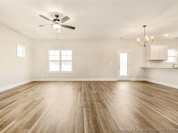 The Southbrook Plan features 4 bedrooms and 2.5 bathrooms and a two-car garage. This open concept floor plan has a spacious living room that is open to the dining area and kitchen. The kitchen includes designer cabinets with crown molding, with granite countertops, tile backsplash, and stainless-steel appliances. The large master suite includes dual vanities, shower, private toilet room, linen closet, and two walk-in closets. The home has a mud room with laundry area off the garage with a drop zone. This development includes nearly .5 ac lots, is located just 30 minutes to Ft Bragg, and has no HOA!