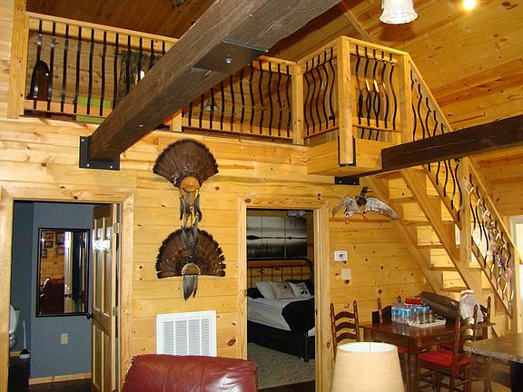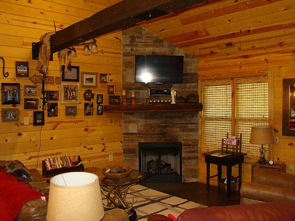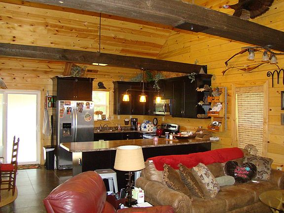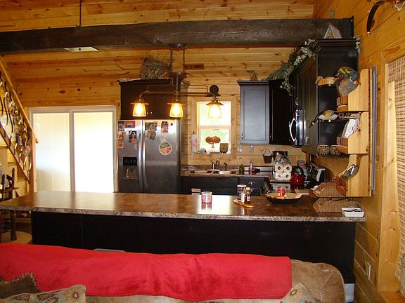 Super nice waterfront cabin with a very gentle slope to beautiful KY Lake. Home features an open living room and kitchen with tall vaulted ceilings, nice size downstairs bedroom, a loft bedroom upstairs and a large deck on the back to relax on. This a great place to get away. Cut out of a larger tract. Owner has marked the corners with stakes and flagging.