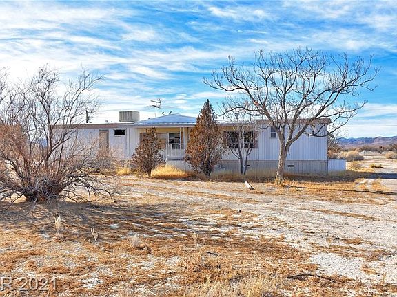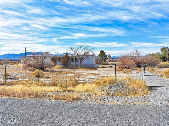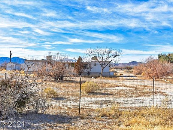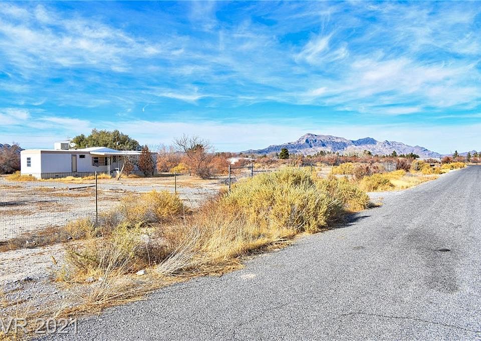 Stunning mountain views in every direction! Sunsets over Shadow Mountain, Last Chance Range, & sunrise over snowcapped Mt Charleston. Fully-fenced 1.25 acres, circular drive, pumphouse, RV hookup, & great location to local amenities and Las Vegas!! Home needs to be completely redone, possible teardown, but well and septic are ready for your project!
