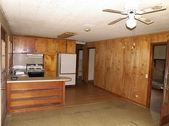 Sitting on a hill surrounded by mature landscape, you can follow the circular drive passed the brick garage with its upstairs apartment or continue beside the decorative rock wall to the kitchen entrance or just keep going to the front porch. This 3 bedroom/2 bath home needs TLC to make it perfect for your family. The yard has lots of room for kids to play while the adults sit at the patio tables and enjoy the day. Are you the right person for this treasure? Come and see.