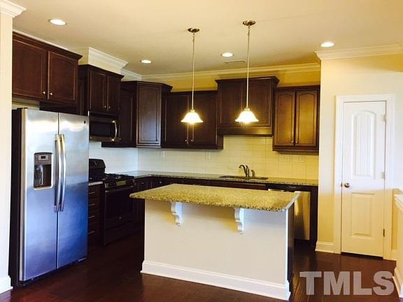 Move in condition! Partial stone front home at Greystone, 5 inch hardwood for the entire 1st floor, spacious living room w/fireplace, kitchen w/island and granite counter-tops, tile blacksplash, SS appliances, screened porch, community pool & walking trails, easy commute to shopping, restaurants, RTP, airport and 540.