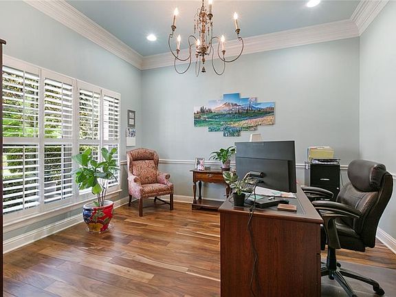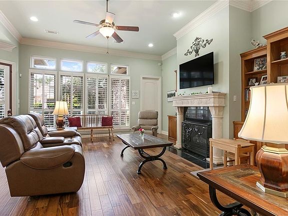 Come home to Arbor Walk an established community w/ a mix of garden & estate homes. Custom built home with open living area features built-in cypress cabinets & custom travertine mantle. Acacia wood floors throughout entire house. Open & spacious kitchen w/3 cm granite counters, cypress cabinets & stainless appliances. Cul-de-sac location offers privacy & beautiful adjacent green space lends an openness that's hard to match. Community pool, gate & all grounds around home maintained by HOA for peace of mind.