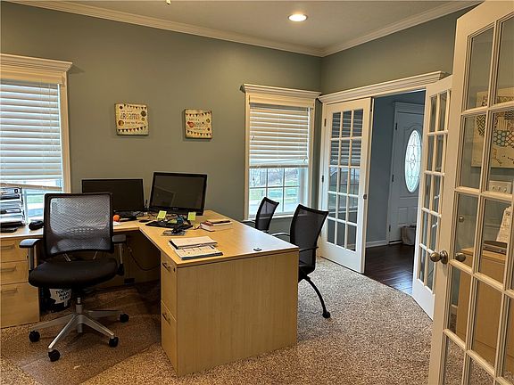 This 9-year old Moranda Home has the "New Haven" floor plan with a spacious foyer, large office/playroom and all bedrooms on upper level. Its open floor plan, includes the living room, dining room and kitchen with 2 islands and granite countertops; you will have plenty of room for entertaining all the special people in your life. Master Suite includes a spacious shower, soaking tub and two separate vanity spaces. Custom shelving and workspace was created in the garage and will suite storage needs nicely. 50amp plug was installed in garage, perfect for Electric Vehicle charging. Basement has rough plumbing and could be finished off as a bonus room with a bathroom. Back deck creates outdoor dining and the flat, fenced in yard is perfect for little ones + pets! Extra features include a whole home humidifier and ADT security system.