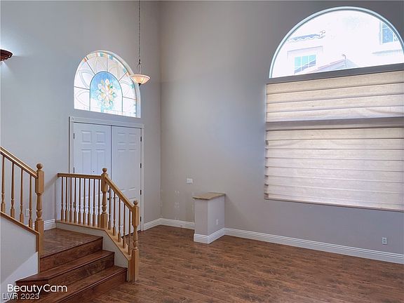 Beautiful property located in the center of Summerlin, near shopping, school, park and freeway, features 5 beds and3 full bath with a bed down and a full bath down, 3 car garage, high ceilings living room, upgraded kitchen withgranite counter top, two way fireplace shared with dining and family room, master upstairs with access to thebalcony, covered patio backyard, a must see property!
