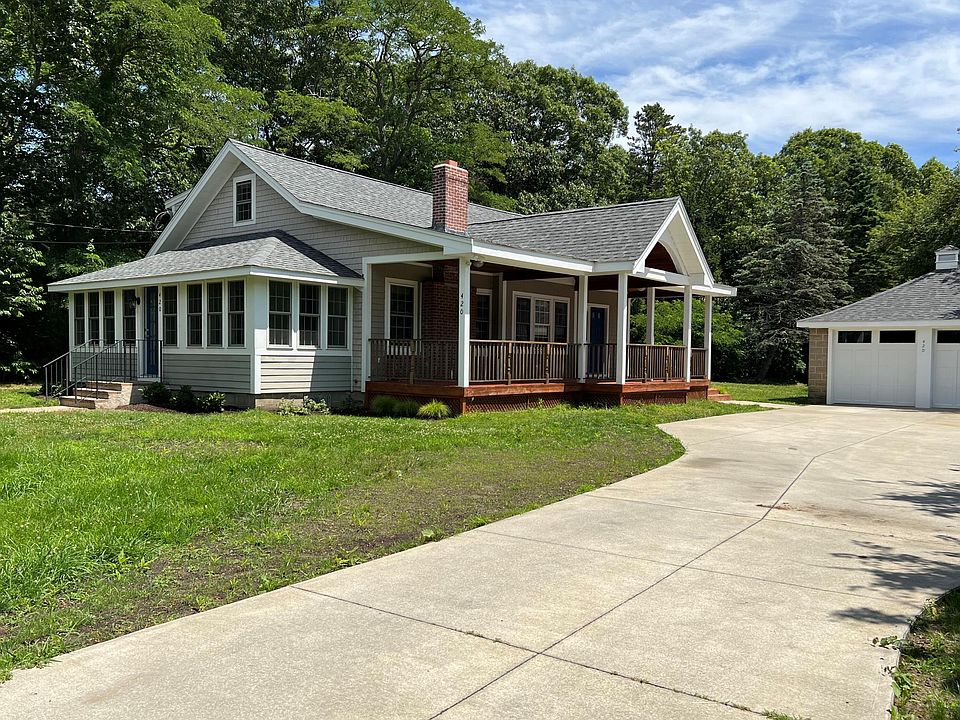Introducing this beautiful 3 BR 2BA Cape Cod Bungalow with detached oversized 2 car garage with workshop, set on an amazing 3.63 acres. This historic & modern architectural marriage is set in the heart of Marstons Mills village. Restored in 2011/12 to its original wood floors and 8 1/2 ft ceilings on the 1st floor, sunny open rooms, new bathrooms, updated kitchen with quartz counters, and freshly painted interior in 2022. Open living room with wood burning brick fireplace, with access to the 3 season porch. Dining room and family room with access to the oversized rear deck. There is a bedroom on the first floor with a bathroom and laundry. Upstairs are 2 more bedrooms, a full bath and a cedar closet. A multitude of exterior decks with a variety of exposures welcome outside living and entertaining. Walk to Hamblin Pond across the street with sandy beach, bathrooms and park like setting. For the equestrian, there is plenty of room on the property to accommodate horses, a barn and the related improvements. 1/2 mi to boutique shops and restaurants, 1.4 mi to local shopping center and 4 mi to beautiful Dowses Beach in Osterville. Buyer/Agent to verify all info herein.