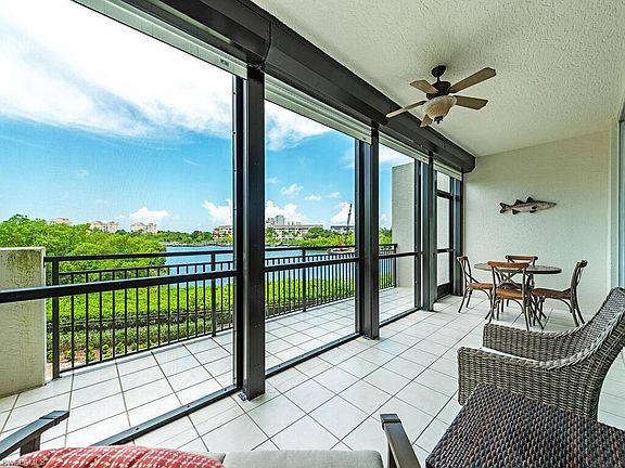 Beautiful views from the oversized balcony of this terrace level residence in Cove Tower. Turnkey - includes furniture and decorator package. Recently remodeled with new stylish flooring, trim, master bath, and freshly painted. The terrace level residences have extra space outside of the screen lanai, offering sparkling water and natural preserve views. Hurricane shutters on the lanai. Open great room plan combines the kitchen, dining, and living area offering generous space for family gatherings and entertaining. Elevator is just steps away from the front door. Located near the community pool. Extra storage space included as well as a corner covered parking space near the front entry. Community amenities include pool, hot tub, grill area, kayak storage. This residence also has a membership to Tarpon Cove Yacht and Racquet Club, which can be transferred to the new owner at a reduced rate. Club amenities include tennis, bocce, dining, fitness center, resort pool, beach shuttle, tiki bar, and an active social calendar. Boat slips available for lease or purchase. Cove Towers is an exclusive gated community with a fantastic location in North Naples, close to beaches, restaurants, shopping.