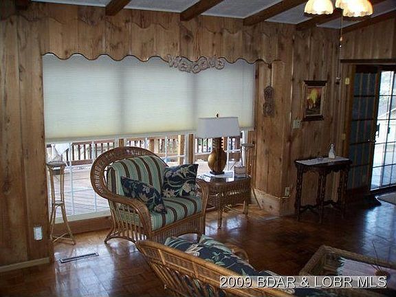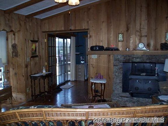 Darling lakeview home! Very unique! Vaulted ceilings! Stone fireplace with insert, parquet floor in living room, Office off of living room with great light from three sliding doors, Bright kitchen with lake view! Two ample sized bedrooms, each with a window seat. One bedroom exits on to a great private little patio! Bath and half, master bath has 'walk-in' jetted bathtub with shower. Two car plus garage and space for workshop plus an additional double carport! Screened in porch located in front of the garage. LOTS and LOTS and LOTS of room for storage! Lakeside deck for enjoying the view, Paved road to the door! Exterior stone facade on lake side. Fenced pet enclosure on side of home. Boat Slip w/Lift in Community Dock.