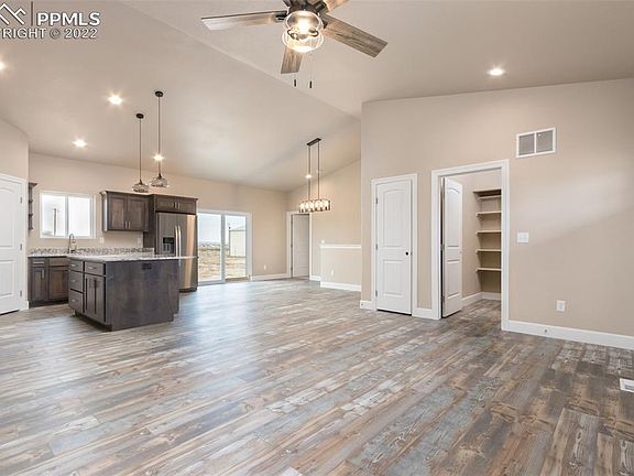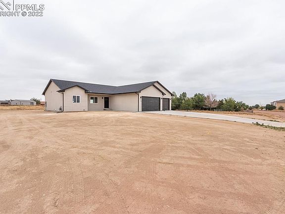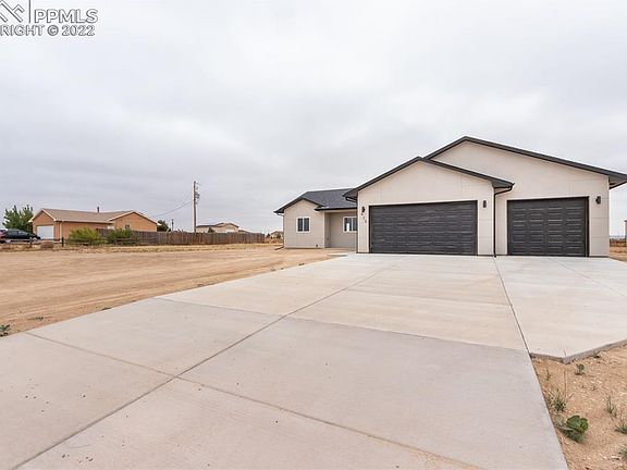 This beautiful new construction home has 5 bedrooms, 3 bathrooms and a extra large 3 car garage 32'3 wide x 26' deep so you can park your vehicles and all you toys. You will love the open concept, split bedroom floor plan, with a large family room and wet bar for entertaining. Main level master bedroom, with 5-piece bathroom and a large storage area. The home sets on 1.26 acres and has mountain views that greet you every morning! Close to Pueblo via Wildhorse or Platteville to I-25 so a very fast commute to Pueblo and Colorado Springs and a short distance from Lake Pueblo!