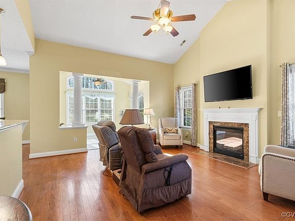 Maintenance free 1 level condo with an oversized 2 car garage located in the heart of Midlothian. The oversized foyer has hardwood floors and leads to an open family room with hardwoods, vaulted ceiling and fireplace. The kitchen opens to the family room with granite tops, 42 inch cabinets and stainless steel appliances with a breakfast area and bar top. The sunroom off the family room lets in plenty of light, ceramic tile floor and overlooks a private wooded area. The large primary bedroom has new carpet, 2 closets and its own bath with shower and jetted tub with new granite tops. The second bedroom has new carpet and the whole house has been freshly painted. The oversized 2 car garage has a custom epoxy floor with an entrance for the walk up attic. Dont miss this opportunity for one level living when this home becomes available.